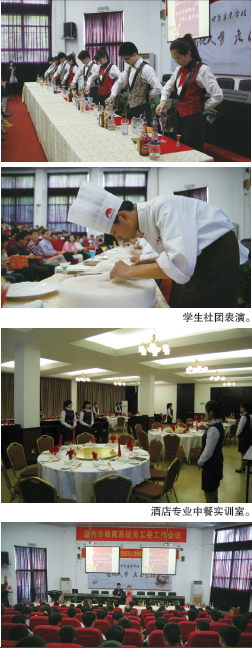 学校现已发展壮大成为一所总校拥有十几个专业、60多个班级、在校生3000多人的国家级重点职业学校,学校设有烹饪管理、旅游管理与商务、中西烹饪、饭店管理、双语国际贸易、电脑装潢设计、计算机应用、金融财会等专业,其中烹饪专业为浙江省示范性专业,双语国际贸易专业、装潢专业、文秘专业为温州市示范性专业。