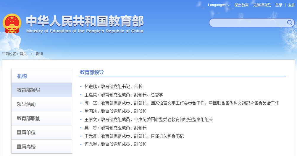 目前,教育部部领导如下: