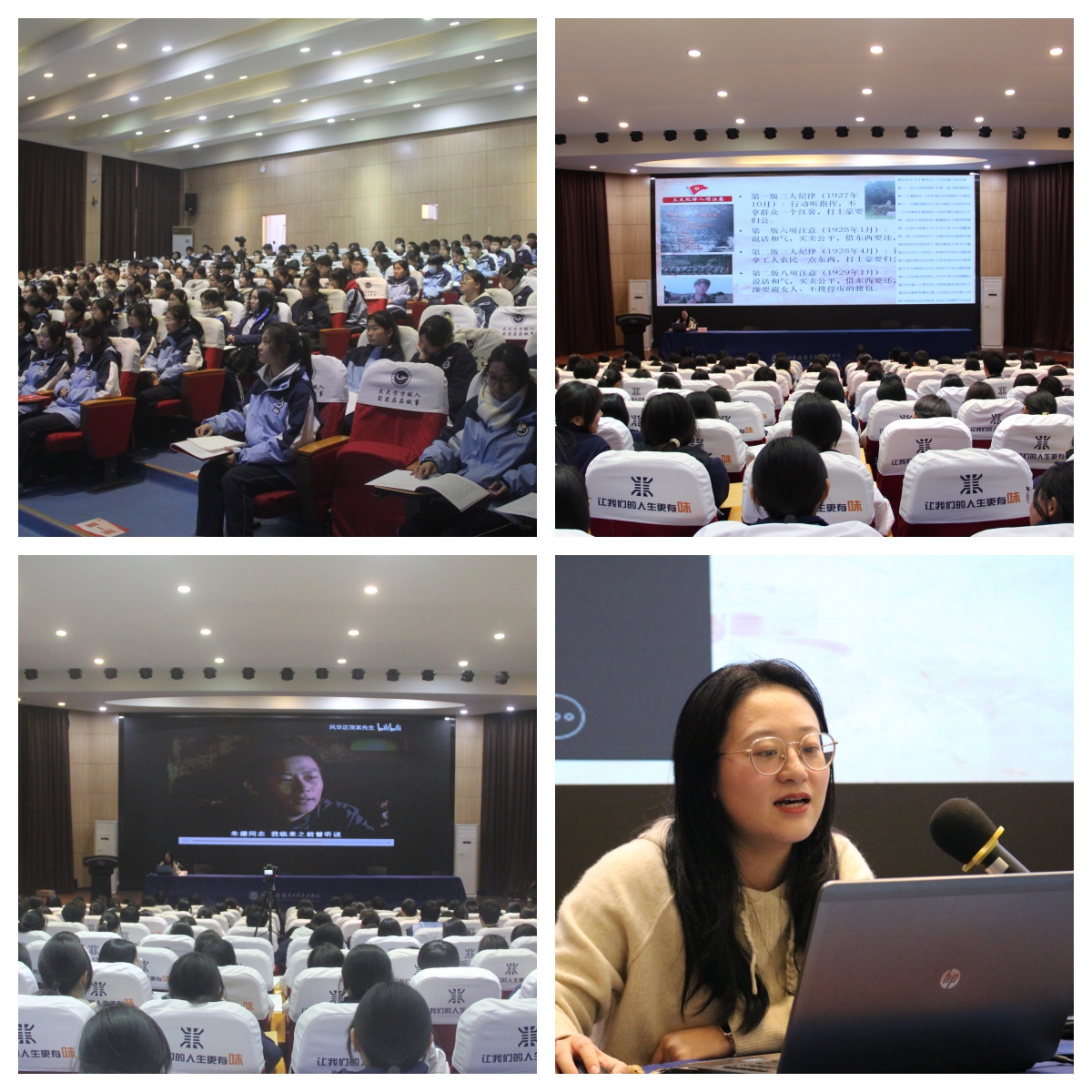 为了深化学习体验,朱老师教大家一起唱《三大纪律八项注意》《毛委员和我们在一起》等经典歌曲。会场内歌声回荡,这不仅是对历史的致敬,更让铁的纪律、坚定的信念、革命的乐观主义与深厚的军民情谊,通过音乐的力量深深融入同学们的心中。朱老师还结合自身在井冈山实地学习时瞻仰革命旧址、编草鞋等的切身经历,分享自己对井冈山精神的感悟。谈及自己挑着扁担重走红军挑粮小道时,老师说:“那些在史料中读到的‘艰苦奋斗’‘军民同心’瞬间变得真实可感。革命先辈肩头担起的不仅是粮食,更是中国的前途命运。”这份融入了脚步丈量与心灵叩问的感悟使井冈山精神化为真实生动的力量。
