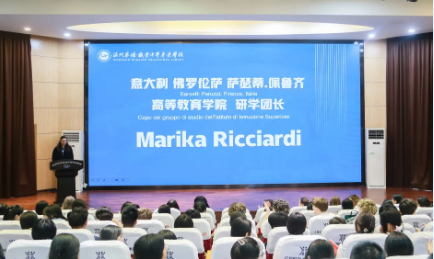 意大利研学团团长Marika Ricciardi女士致辞,对学校的热情接待表示衷心感谢,期待在研学之旅中深度体验中国文化与温州职教特色,持续深化两校友好合作。