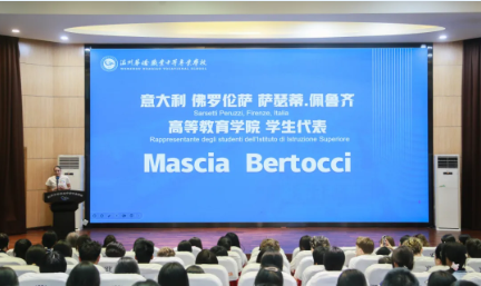 随后,意大利佛罗伦萨萨瑟蒂·佩鲁齐高等教育学院学生代表Mascia Bertocci上台发言,她分享了对中国文化的浓厚兴趣与此次研学的期待,表达了与华侨职专学生友好交流、共学共进的美好愿望。