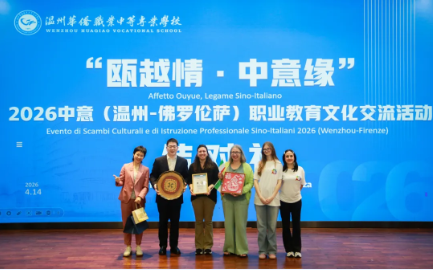 春风送暖,侨韵飘香。4月14日,“瓯越情·中意缘”——2026中意(温州-佛罗伦萨)职业教育文化交流活动欢迎仪式在温州华侨职业中等专业学校隆重举行。来自意大利佛罗伦萨萨瑟蒂·佩鲁齐高等教育学院的师生代表远道而来,与温州华侨职专师生欢聚一堂,共启跨国文化与技能交流新征程。