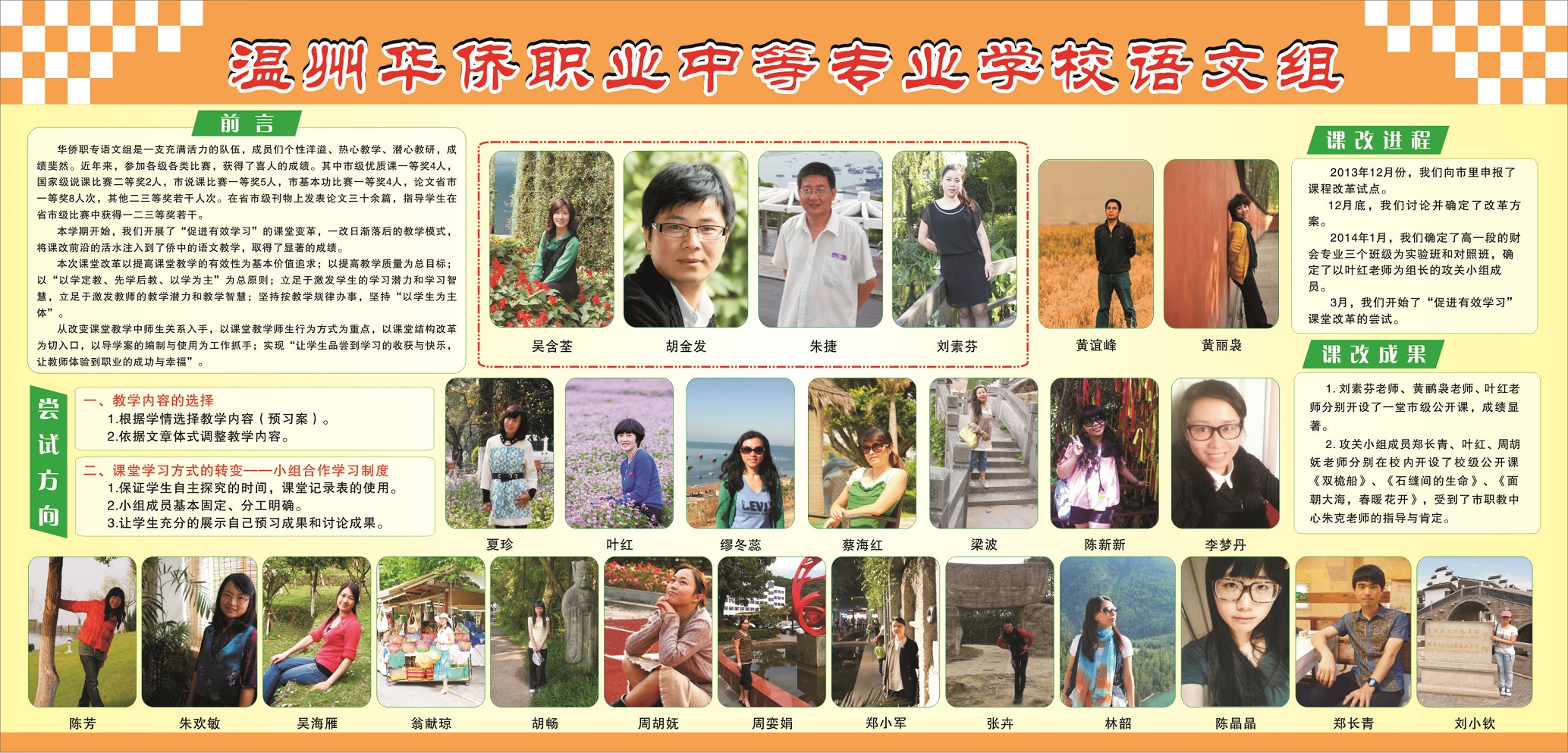 华侨职专语文教研组是一支教育精英汇聚的团队,团队成员以其鲜明的个性、热忱的教学态度和深入的学术研究著称,取得了显著的成就。